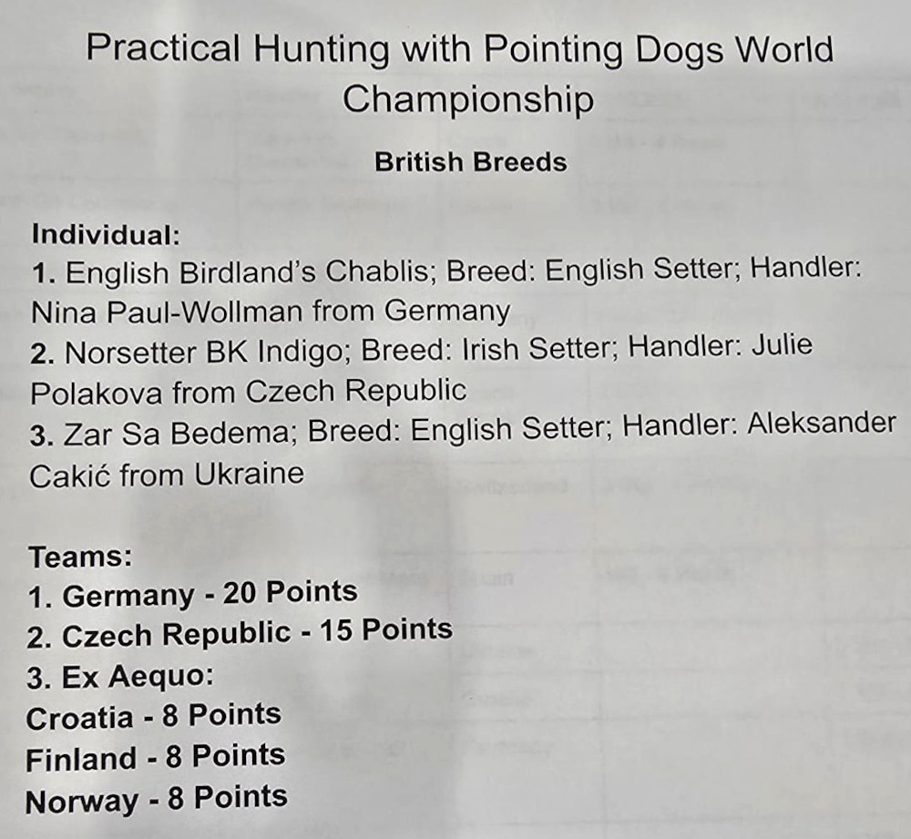 Brittiläisten seisovien kanakoirien MM-kisat pidettiin Pińczówissa Puolassa 17.-19.10. Suomen